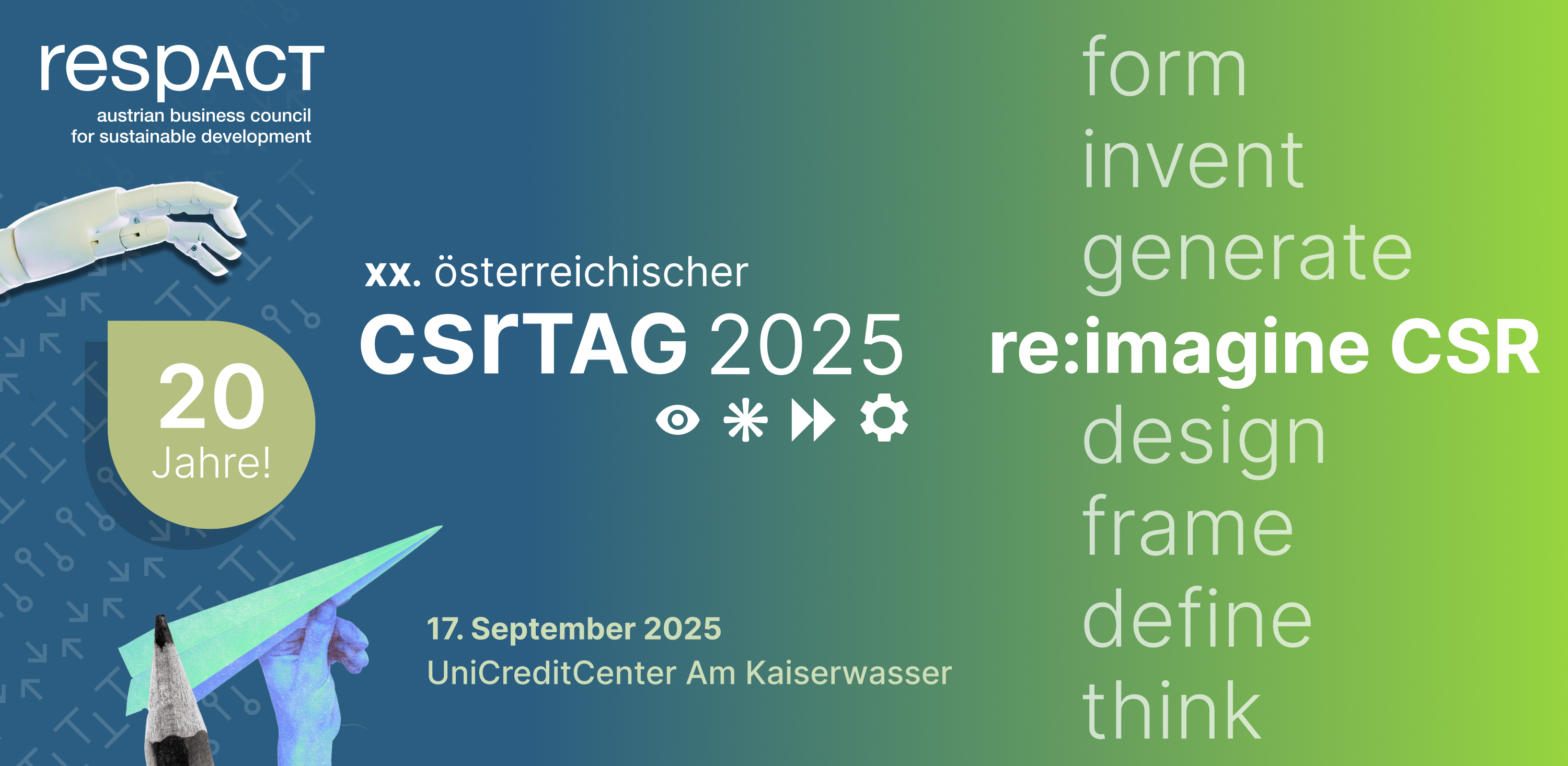 respACT lädt am 17.09.2025 unter dem Motto „re:imagine CSR" über 400 Teilnehmende ins UniCredit Center am Kaiserwasser in Wien zum csrTAG ein, um gemeinsam die Zukunft verantwortungsvollen Wirtschaftens zu gestalten.